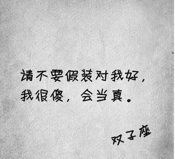 突然感觉,其实身边很多人不懂双子座,很多时候的好心总是被人误解。用心的付出,用心的爱却总是被别人浪费,甚至嘲笑。一个人的时候才是真正的自己,一个人的旅游才能收获真正的快乐,是否这样就注定了双子座王者的孤独。牵强的微笑背后谁能看出双子们的忧伤。